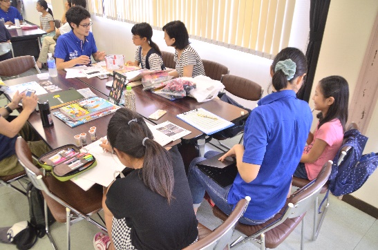 今回の自由研究相談会では、大学で日々研究活動に取り組む大学院生スタッフが中心となって、子どもたちの自由研究を全力でサポートしました。理科の修学旅行で学んだ実験の方法や考察のポイント、研究成果のまとめ方など、疑問や不安はさまざまです。自信満々に自由研究の進捗状況を報告してくれる子もいれば、行き詰ってしまって困ったように相談しに来る子もいました。スタッフたちは1人1人の話に耳を傾け、一緒に解決策を模索したりアドバイスをしていました。