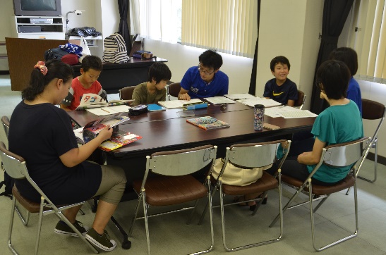 また、今回の自由研究相談会では理科の修学旅行に参加していない子どもたちも参加してくれました。参加者同士が自身の自由研究について紹介し、意見やアドバイスを伝えあう場面も見られました。