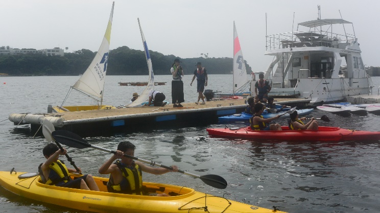 2名1組でペアを作り、アクセスディンギーに乗船し、子どもたち自身が操船しました。