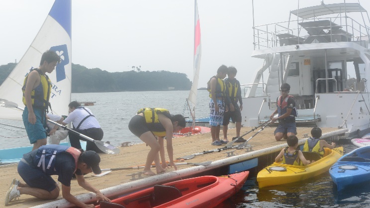 2名ペアで息を合わせてパドルを動かしカヤックを進めます。二人の息が合わないとなかなかうまく進むことができない乗り物です。仲間との協調性を学ぶことができるマリンスポーツです。