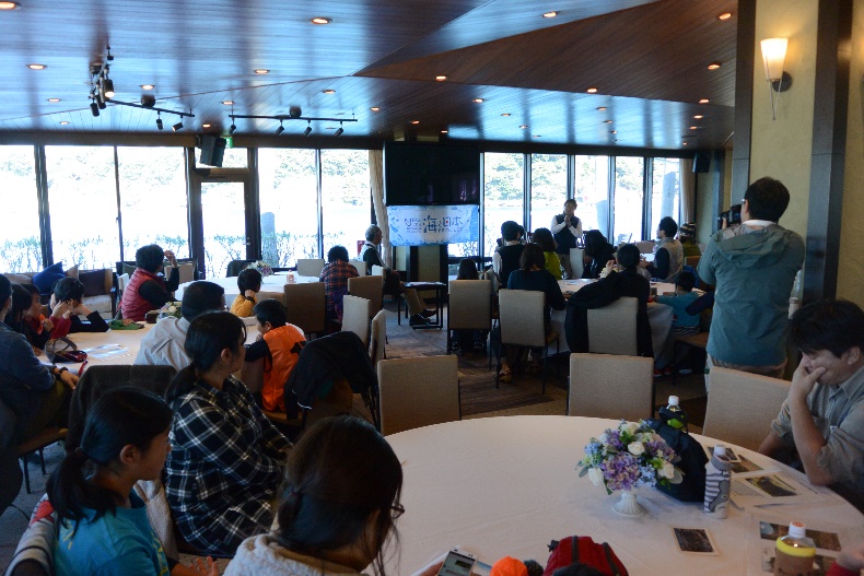 小網代の森調整会議の代表の岸由二氏、理事の柳瀬博一氏を講師として招き、森と海とのつながり、海の生き物についての講演会を行いました。海に興味を持ち、海での活動を行っていただけることを目的としています。