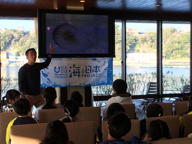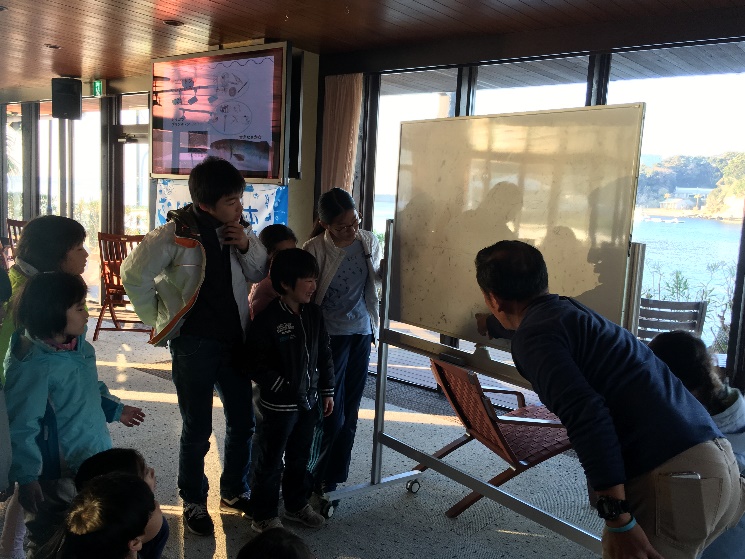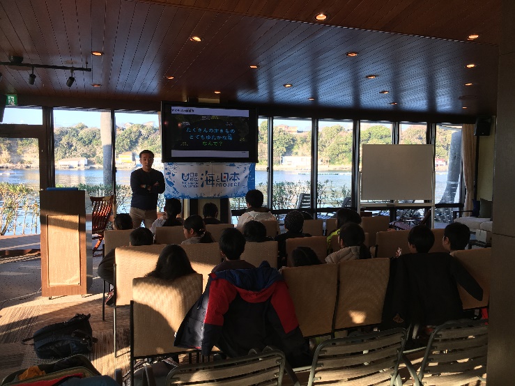 小学生にもわかりやすく海洋生物についての講義を行ってくださいました。様々な海の生き物の写真や実際の海で採取したプランクトンを投影し、動いている様子を見ての観察も行い、海の生物を通じて海や地球の環境についての理解を深めることができました。