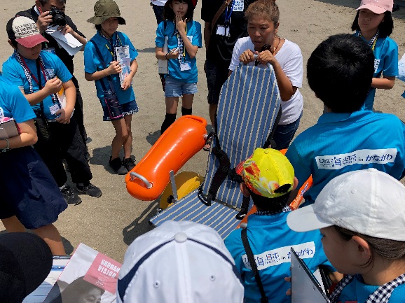 ちびっこ記者による取材②湘南発祥のライフセービング体験と安全な浜辺づくりを実施。