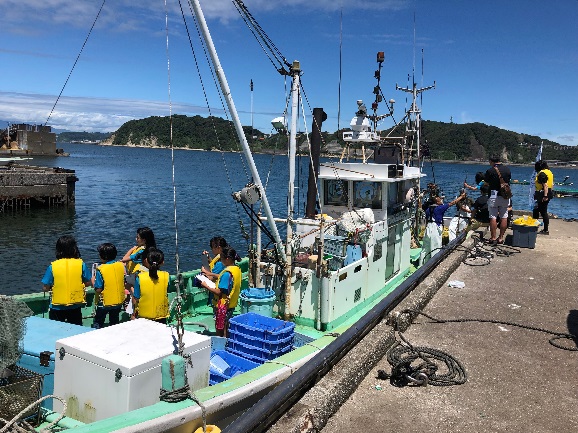 内容:しらすが観光名物として有名になったのか、神奈川県水産技術センターの方に講義をして頂き、「湘南しらす」の歴史を探りました。また近年の環境汚染がしらす漁に与える影響についてもお話頂き、持続可能な漁業のための取り組みについて学びました。その後、葉山ゆうしげ丸様にご協力頂き、湘南しらす漁体験や釜揚げ見学を実施しました。