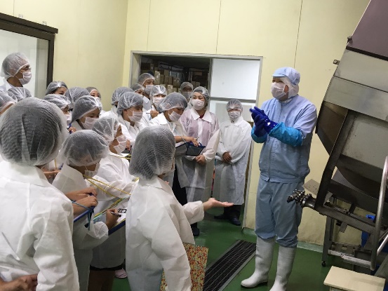 内 容 :通宝工場長の白石幸太氏、商品開発部長の村崎喜崇氏による「ふりかけ製造工程」の説明・見学を行いました。どのように加工されて流通に至るのかという経緯を学びました。完成したふりかけの試食会では、自分たちが配合したふりかけ、デザインしたイラストパッケージが実際に商品化されている様子を見て、改めて本企画を振り返りました。