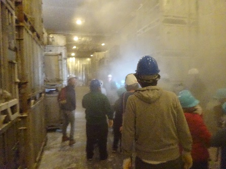 八洲水産事業部部長 高道順三氏、経理部 八木澤教明氏による保存方法などについての解説の元、実際にマグロを冷凍保存しているマイナス70度の冷凍庫を見学しました。