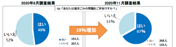 プロジェクトイベントが始まる8月と、全てが終わる11月に海洋ごみに関するアンケート調査を実施しました...