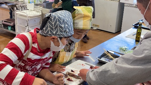 京の食文化ミュージアムあじわい館で「さばける塾」を開催。京都府で水揚げされた魚に実際に触れてもらい、...