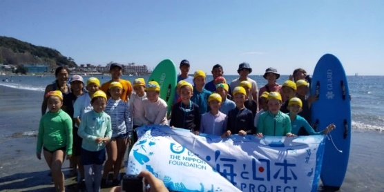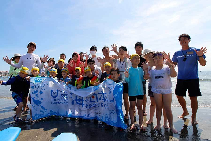 ライフセーバー指導のもとマリンアクティビティを楽しみ、同時に海の大切さや危険なども学ぶ、子どもたちの...