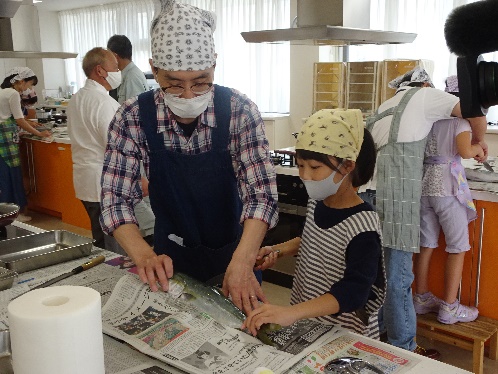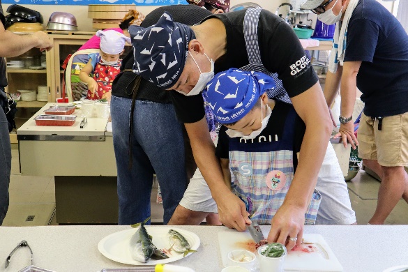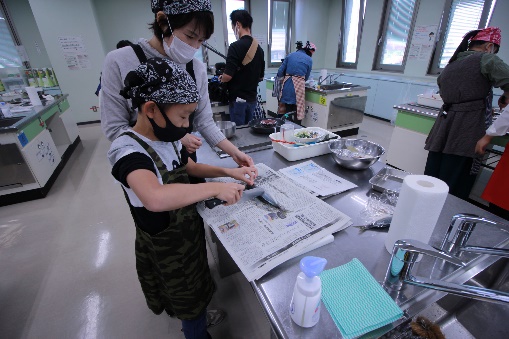大分市でさばける塾を開催。海のことをよく知るための「お魚クイズ」などを楽しんだあと、アジをさばきまし...