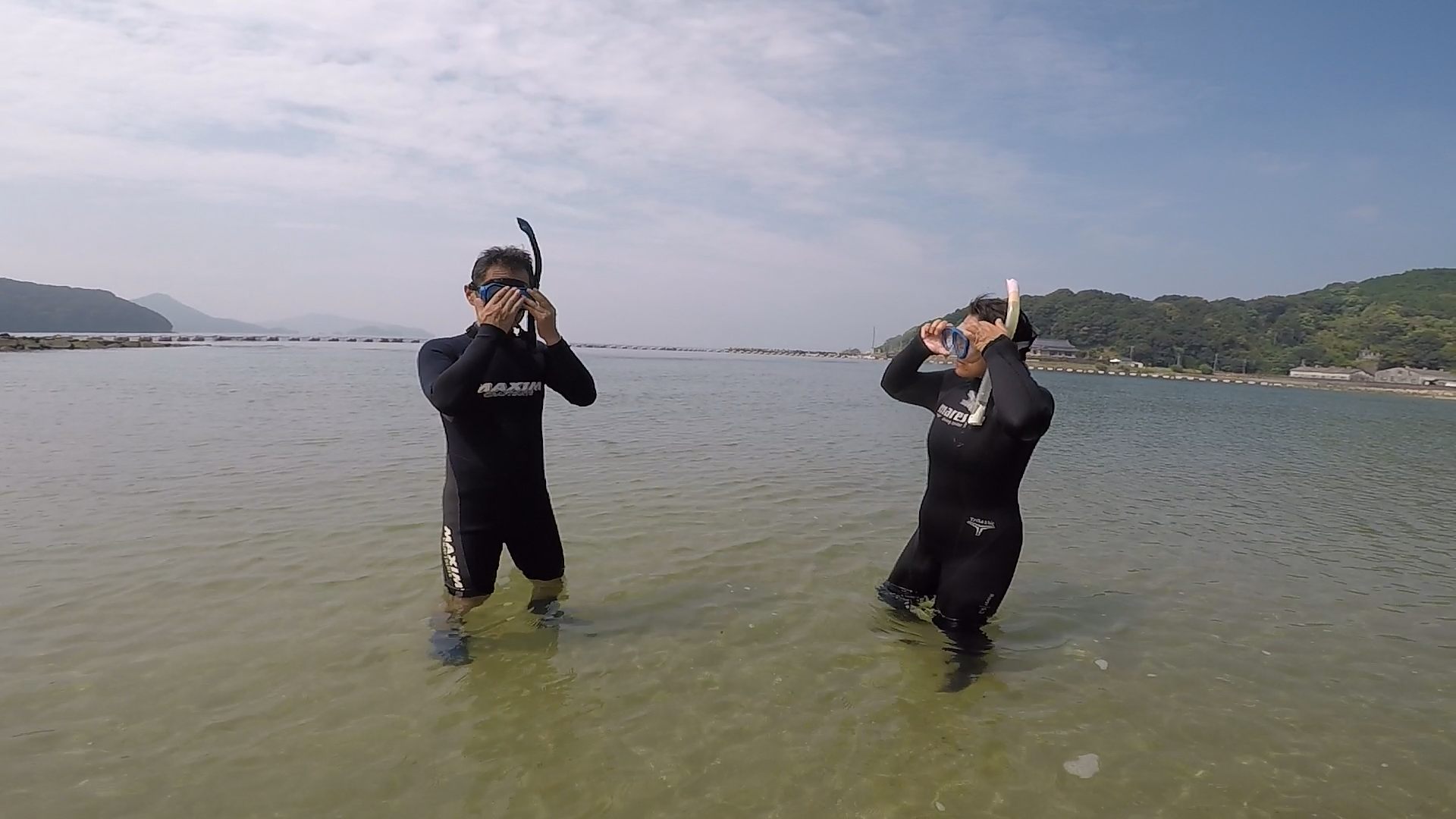天草海部スタッフ:3人、うちシュノーケリング講座受講者1人
