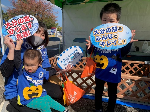 大分フットボールクラブ協力のもと昭和電工ドーム大分で、海洋ごみ問題を理解してもらうイベントを開催。来場者にごみ拾いと分別を行ってもらいました。今回は海のいきものとのふれあいを通して海洋ごみ問題の理解と啓発を促すことができるよう、ごみ拾いに参加してくれた方にはペンギンとの記念撮影ができるという形を取りました。