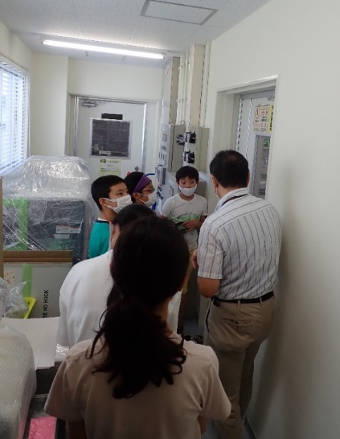 午後は、まず研究棟の見学に行き、岩石カッターの体験をさせてもらいました。子ども達は、岩石カッターの刃は、石が切れるのに触っただけでは指も切れないことにびっくりしていました。クリーンルームも外から見学させてもらい、クリーンの段階も2段階あり、サンプルに余分なものが混じらないように、とても神経を使っていることに感心したりしていました。潜水調査船のドックに行くと、「しんかい6500」の本物があり、みんなそれぞれ写真を撮って、思っていたよりもずっと大きい「しんかい6500」を見上げながら、説明を一生懸命聞いていました。他にも「うらしま」や「ハイパードルフィン」などの深海調査ロボットの説明をしてもらいました。展示室の見学の頃には、かなり打ち解けて、JAMSTECのスタッフの方にいろいろ質問したりしながら、積極的に見て回っている姿が印象的でした。帰る前には、調査船「かいれい」の前で記念撮影をして帰ってきました。