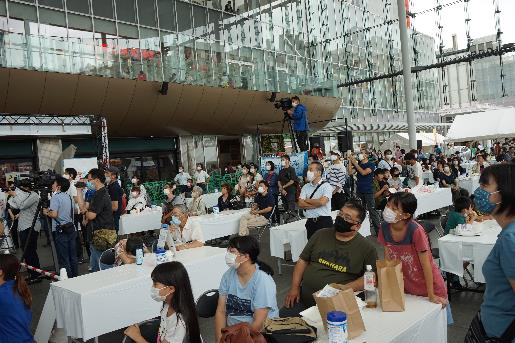 「みんなでごみ拾い」とし、会場内にいるお客様と一斉にごみ拾いを実施しました。