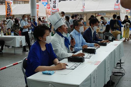 昨年発刊した「福丼本」掲載店の中から公募し、福井が誇る海の幸などを使用した丼を販売する8店舗が出店。販売する丼ぶりの容器は「土に埋めると3か月で自然分解されるプラスチックスマート対応製品」の器(バガス容器)を全店舗で使用。持ち帰り用の岡持ちも紙製のものを使用し、提供する全容器をプラスチックフリー製品にするというオールプラスチックフリーのイベントです。出店社のスタッフ・アナウンサーが青い物を身に着けてイベント運営に臨みました。また、福丼県イベント会場内中央ステージで福丼県PRを実施し、イベント主旨を広く周知してもらえるように呼びかけました。(12日(土)10時・11時・12時・13時・14時・15時半 計6回、13日(日)10時・11時・14時・14時45分 計4回 合計10回)