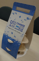 海洋ごみを減らし循環型社会をつくるための活動として、自然にかえる天然素材を用いた容器デザインを募集した「NEXT DONBURI CONTEST」の決勝ラウンドを開催。福井県内在中の中学生・高校生・専門学校生・短大生・大学生を対象に募集し、259通の応募の中から一次審査を通過した5人が大賞を目指しプレゼンテーションを行いました。審査員も青い物を身に着け、審査に臨みました。