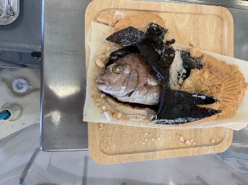 兵庫県明石市の名産「明石鯛」を使って、鯛のつくりや特徴を学習した後参加者それぞれの想いを込めて塩釜焼を作りました。