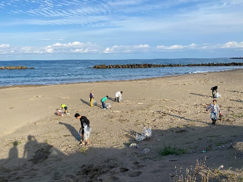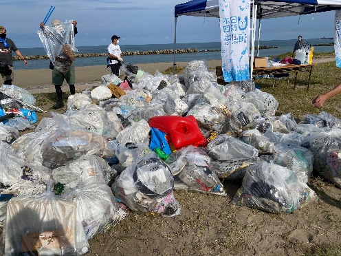 秋の海ごみゼロウィークにあわせて実施した今回の清掃活動には52名のボランティア参加者が集まりました。犀川の河口とその付近の海岸を2時間ほど清掃し、ペットボトル1412本のほか、BBQやマリンレジャーで海に訪れた人が捨てたものとみられる食品トレイや浮き輪などを回収しました。