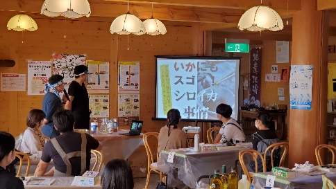 鳥取市の安蔵森林公園で「さばける塾」を開催し親子8組20人が参加。イサキや白いかを自分でさばいて調理したり、海鮮BBQを楽しみ、地元鳥取の魚についても学びました。海の恵みに感謝するとともに、美味しい魚が育つ環境を保つことの大切さを伝えました。