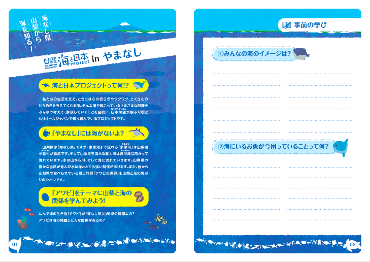 専門家を講師に招き、体験機会が減ってしまった児童たちへ特別な学びの機会を設けました。山梨の特産品・アワビの煮貝など身近な話題も取り上げながら、山梨県と海が様々な面でつながっていること、一人ひとりの海を守る行動が大切なことを学びました。