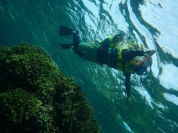 スノーケリングで「赤崎サンゴの森」を観察