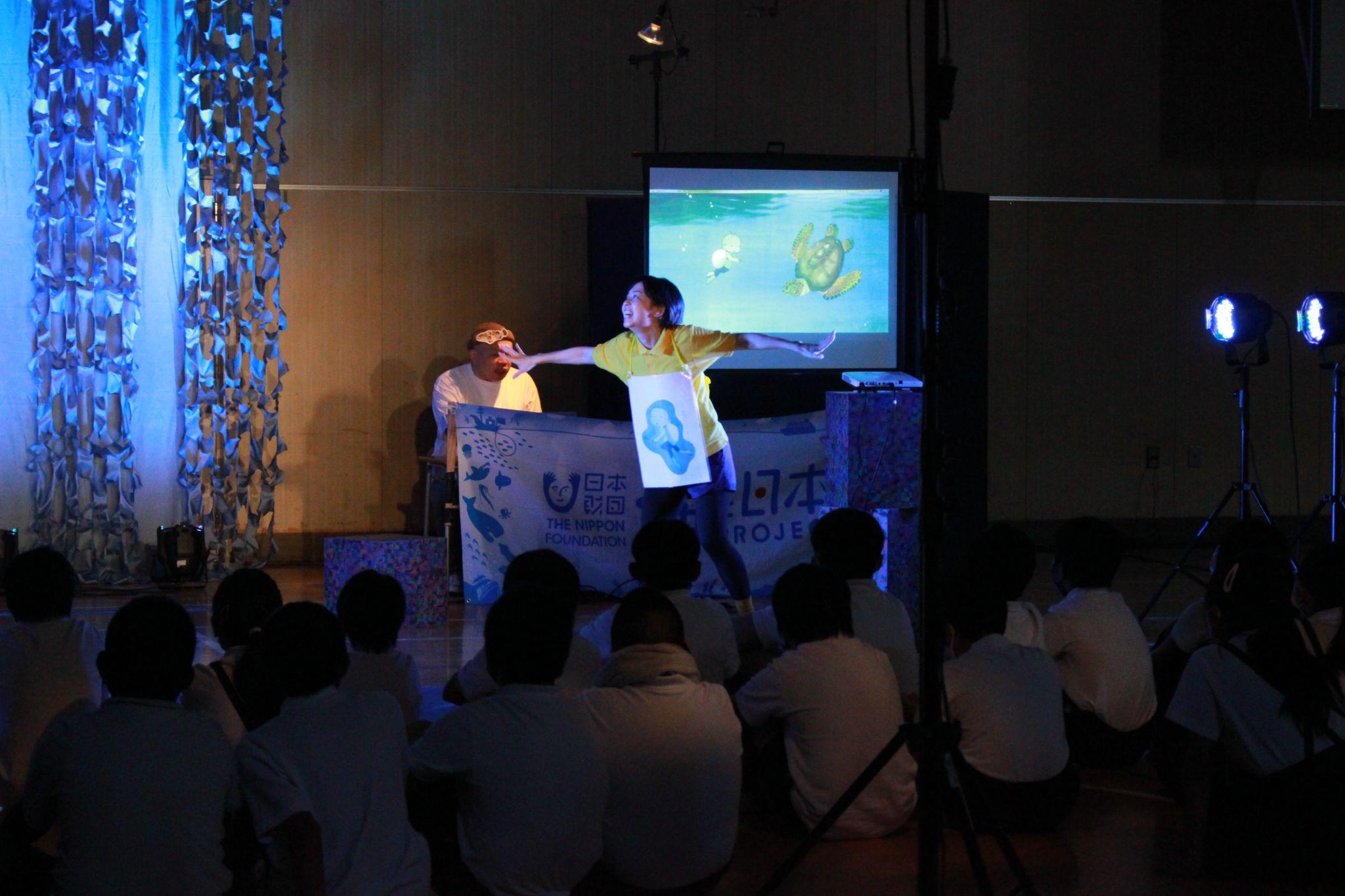大阪市立小学校で学校公演『かいくんのさがしもの』を上演後、海の世界を感じてもらう演劇体験授業を実施。...