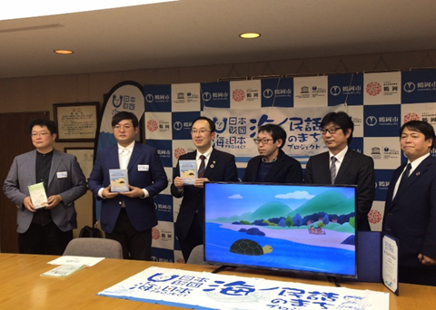 海ノ民話のまち 愛媛県今治市のアニメ「クジラのお礼まいり」が完成! 認定委員長が徳永繁樹市長を表敬訪問しアニメを披露