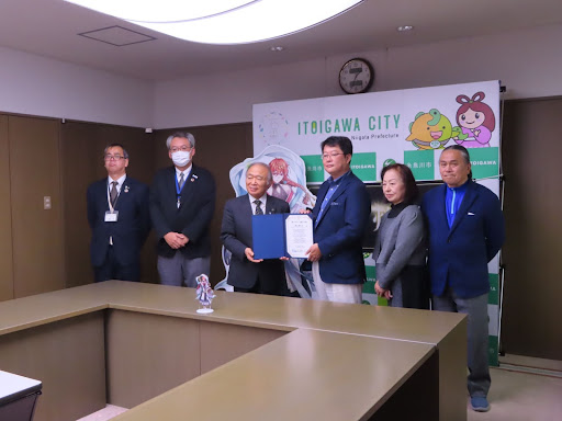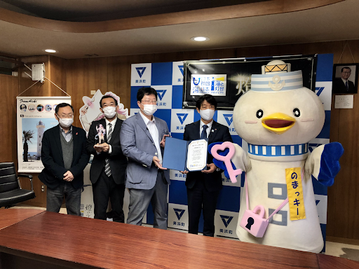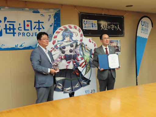 新潟県糸魚川市「能生港灯台」を擬人化したキャラクターが完成!「燈の守り人」製作委員会プロデューサーが米田徹市長を表敬訪問しキャラクター贈呈式を実施しました