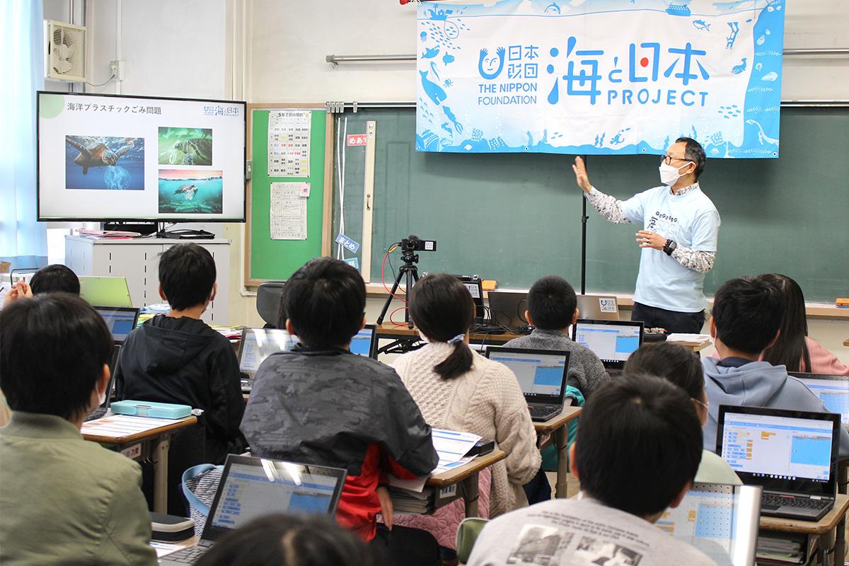 足立区立東伊興小学校にてSDGs課題14「海の豊かさを守ろう」をテーマに出前授業を実施。算数を応用し...