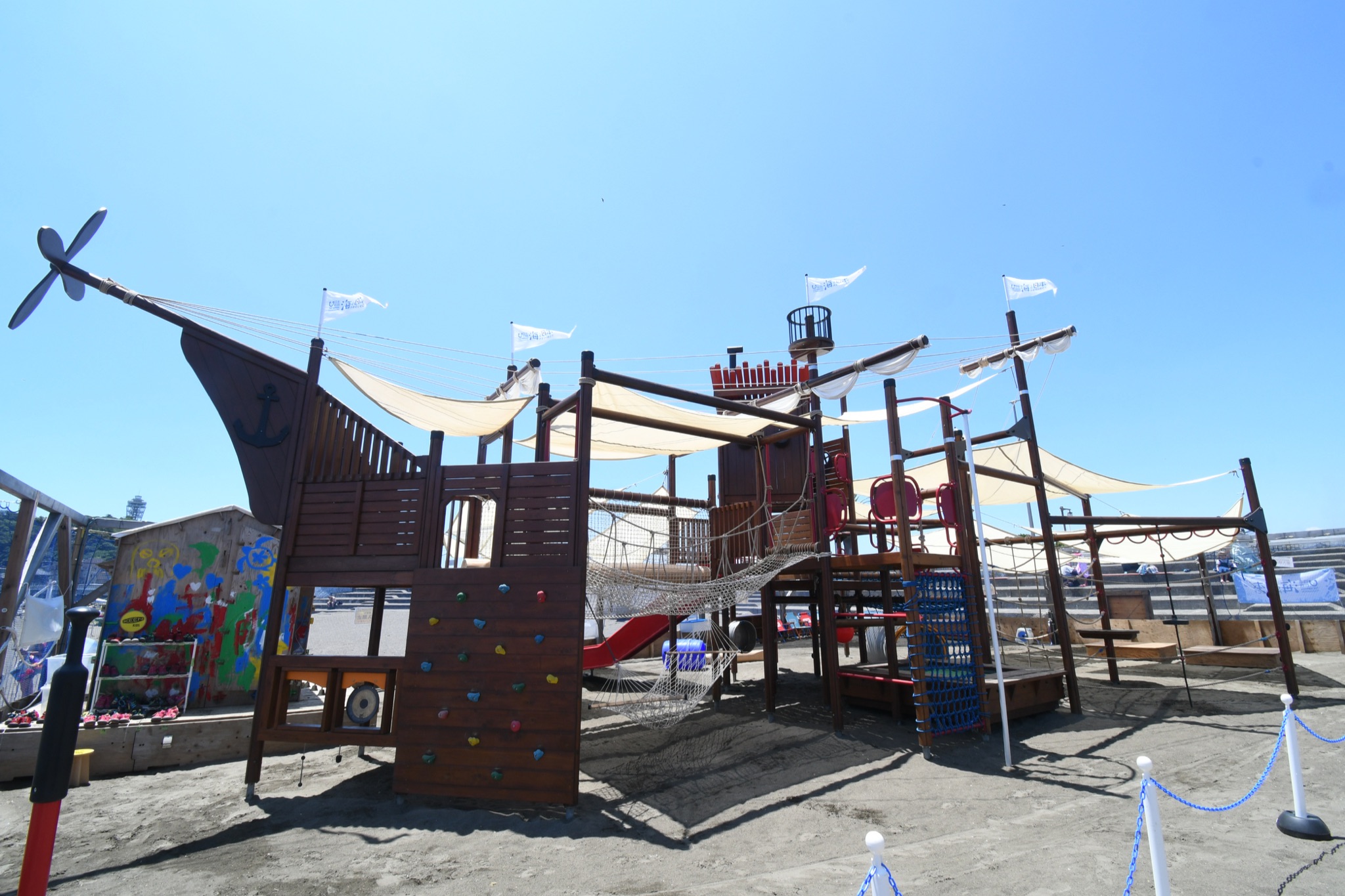 神奈川県藤沢市・片瀬東浜で船のアスレチックなどが体験できる「ちびっこBEACH SAVERパーク」を...