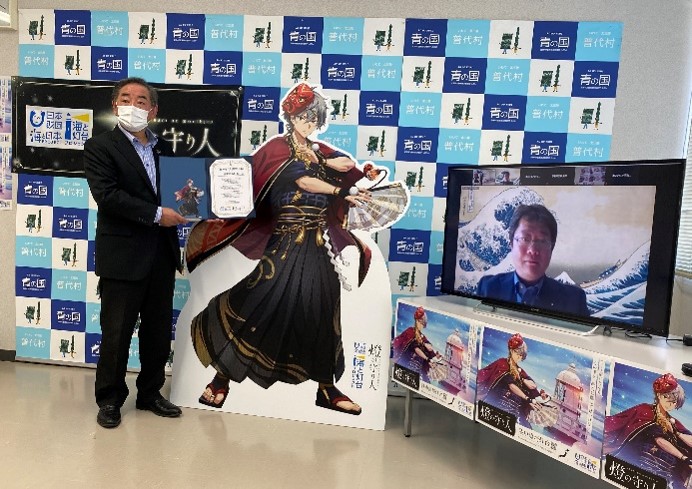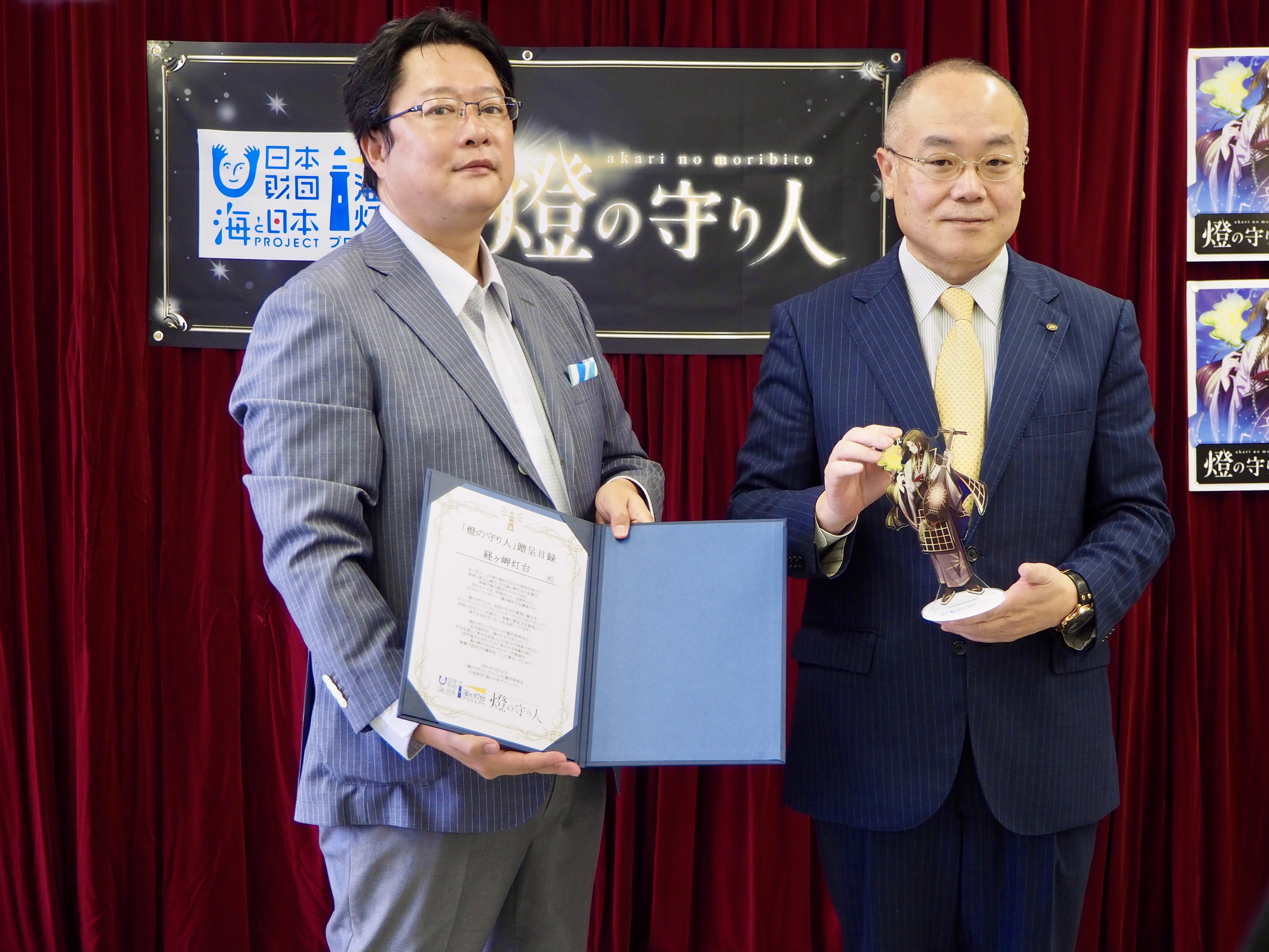 京都府京丹後市「経ケ岬灯台」を擬人化したキャラクターが完成! 「燈の守り人」製作委員会プロデューサーが 中山 泰市長を表敬訪問しキャラクター贈呈式を実施しました