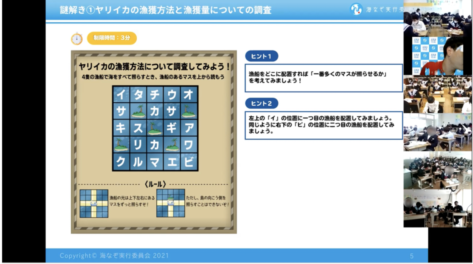海なぞ実行委員会は、伊賀市立上野南中学校(三重)とアクアマリンふくしま(福島)をオンラインでつな...