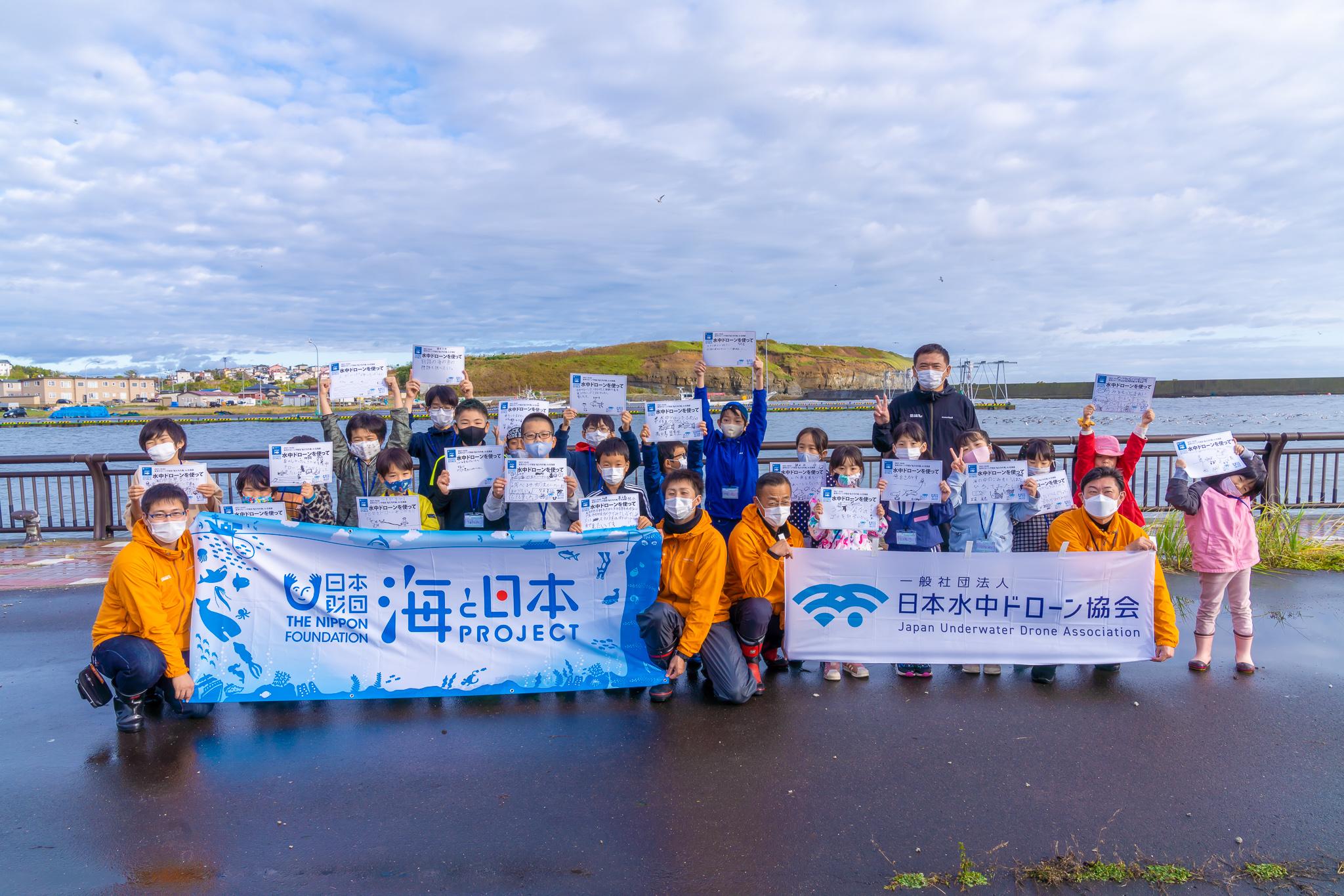北海道の千代の浦漁港、千代の浦マリンパークで地域の小学生・中学生を対象に水中ドローン体験イベントを開...