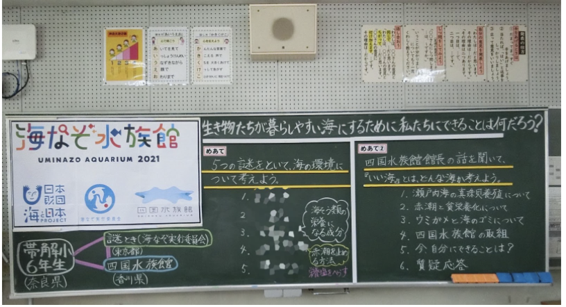 海なぞ実行委員会は、帯解小学校(奈良)と四国水族館(香川)をオンラインでつなぐオンライン出前授業を、...