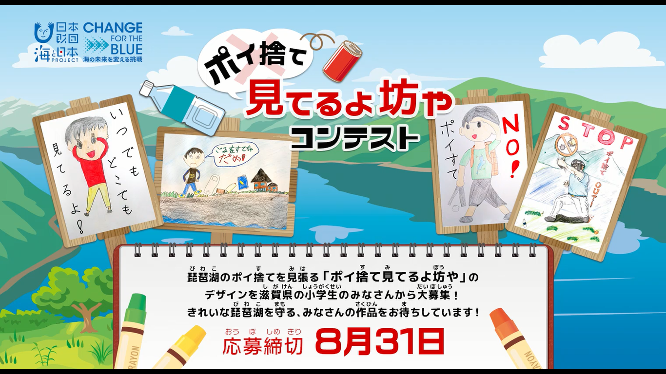 交通安全を見守る看板「飛び出し坊や」発祥の地・滋賀県で、琵琶湖岸のポイ捨てを見張ってもらう新しい坊や...