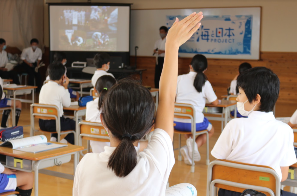 有明海など3つの海に囲まれた天草の海の現状や課題について、地元の小学生が高校生から学ぶ体験授業を開催...
