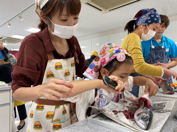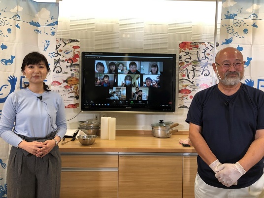 名古屋市でオンライン形式のさばける塾を開催。水揚げされた魚が家に届くまでの映像を見たあと、魚をさばき...