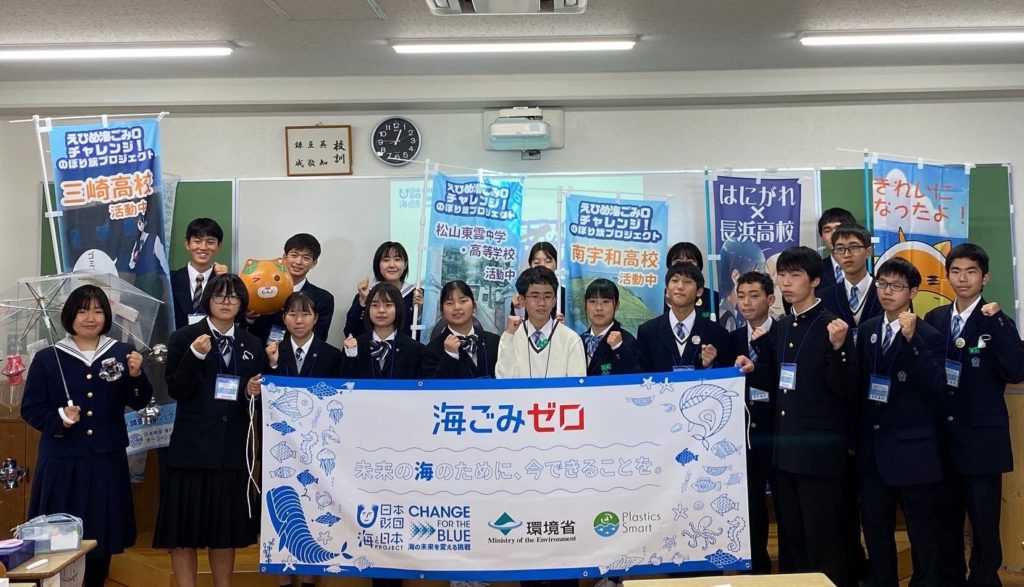 えひめ海ごみ調査プロジェクト実行委員会では、愛媛県内の高校と連携し学校周辺の海岸緑地などにのぼり旗を...