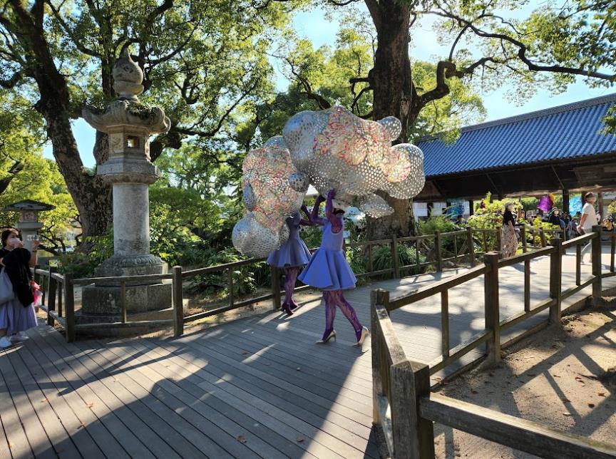NPO法人太宰府アートのたねは、10月1日(土)・2日(日)に、文化と学びの神様太宰府天満宮参道や絵馬堂にて、テレビや映画で大活躍のひびのこづえさんにお越しいただき、ダンサーが美しく不思議な海の中を表現するパフォーマンスを実施しました。この海のダンスパフォーマンスは、子どもたちに美しい海と自然を手渡していくことや毎日の暮らしを見直すことを目的に開催。