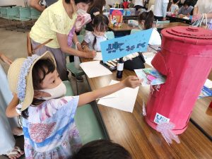 NPO法人太宰府アートのたねは、『海と日本PROJECT「うみぽす」海のPRコンテスト2022』への応募を促すため「海のクイズと海への手紙」を描くワークショップを開催。参加者の中から、子どもの絵手紙部門準グランプリなどの入賞者が出ました。
