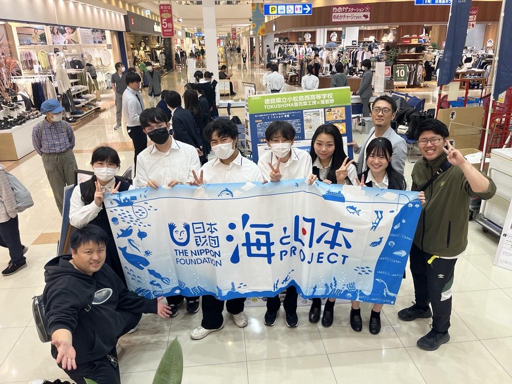 一般社団法人藻藍部は、藻場再生活動の訴求と商品PRのため、ゆめタウン徳島で小松島西高校の生徒とアイゴ...