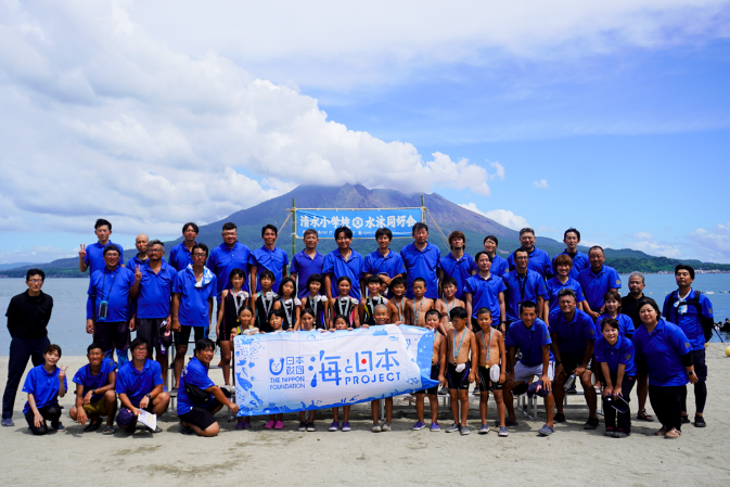 清水小学校水泳同好会は、清水小学校4~6年生の児童、卒業生、コーチからなる参加泳者が、桜島の小池から...