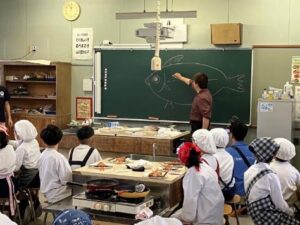 海・みなと・蒲郡実行委員会は、がまごおりさばけるプロジェクト「がまごおりじなる授業」と題し、蒲郡市内の小中学生に対して生き物の恵みの学習会と調理実習を開催しました。地元の海について学びを深め、地元の海を好きになるきっかけづくりをしました。
