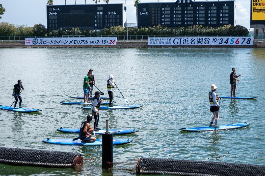 8月25日(日)は、ボートレース浜名湖の競走水面を利用しマリンアトラクション体験を実施しました。SUP体験、ペダルSUP&ペダルボート体験、ゴムボート乗艇体験、シーカヤック体験、「めざせ浜名湖のトビウオ遠泳体験えい!泳!お~!」と題した遠泳体験など様々なマリンアトラクションを実施いたしました。