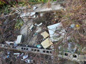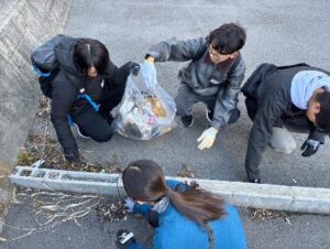 5つのグループに分かれ、約2時間ほどの清掃で16袋のごみ(普通10袋、びん・缶5袋、危険物1袋)を回収することができました。缶やペットボトル、タバコの吸殻などが多かったです。