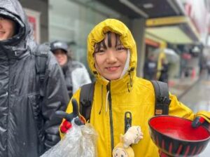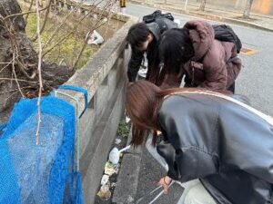 午後は更に気温が上がり、汗ばむ陽気の中での清掃活動となりました。側溝や公園など、人目に触れにくい場所には多くのごみがあり、注意しながら進めました。街の人からは「すごいね。ごみを拾うことは、幸せを拾うこと」という嬉しい言葉もいただきました。