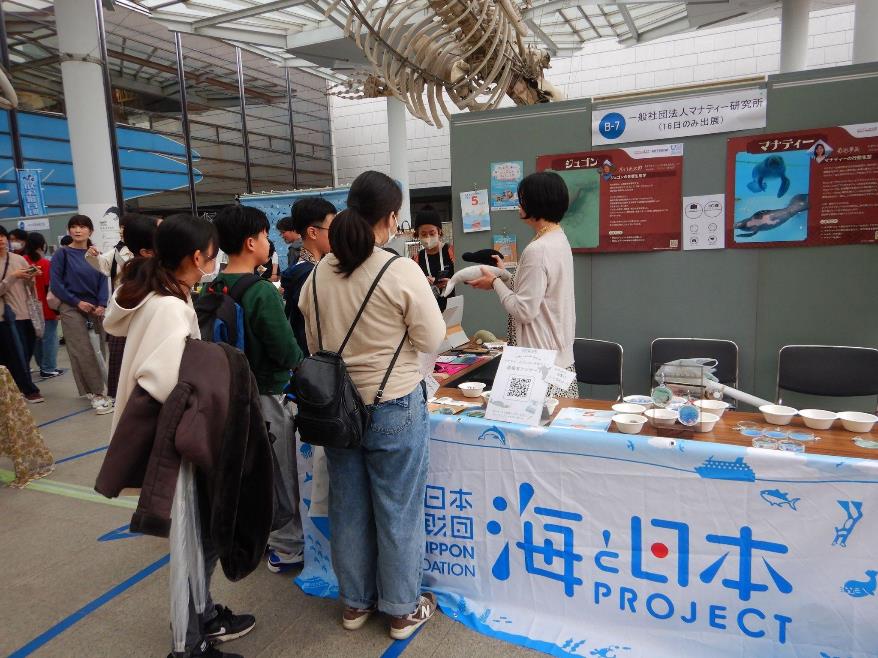 一般社団法人マナティー研究所は大阪自然史フェスティバルにブース出展し、マナティーとジュゴンの解説、海の生きものを学べるキーホルダー作りなどを実施。生きもの解説は、マナティーの研究者・菊池夢美(京大野生研/マナティー研究所)が行いました。