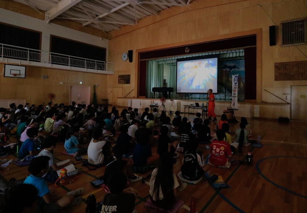 2024年 6月24日(月)、平塚市立みずほ小学校体育館において、当NPO理事長豊田が、同校4年生138名と教員7名含む145名に出前授業を実施しました。内容は、ダイビング歴40数年の水中カメラマンの理事長・豊田が、独自に取材撮影した水中から海岸に至るまでの数多くの写真や映像を大きなスクリーンに上映して、海の生き物たちへのプラごみの影響や今後のマイクロプラスチックの私たちへの影響などを子どもたちにわかりやすく解説。また、NPOとしてどのように海のプラスチックごみ問題に取り組んでいるかなどについても解説しました。この出前授業をきっかけに、子どもたちがどのように考え、実際にアクションを起こしていくのか、静かに見守りながら、また一緒に取り組むアクションを起こしていきます。