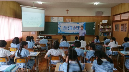 長崎市の長崎精道小学校に鹿児島大学教授の佐野雅昭氏を迎え、「海の楽しさ・海のおいしさ」をテーマに講義していただきました。
