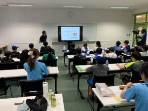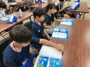座学の場面では講師の問いに積極的に答えたり反応する姿も。自ら学ぼうとする姿勢が見られた2日間でした。参加した児童からは「アマモの移植やシュミレーターなどの体験学習が楽しかった」、「二酸化炭素をなるべく出さないような取り組みをしたい」などの声が聞かれ、充実した時間になったようです。